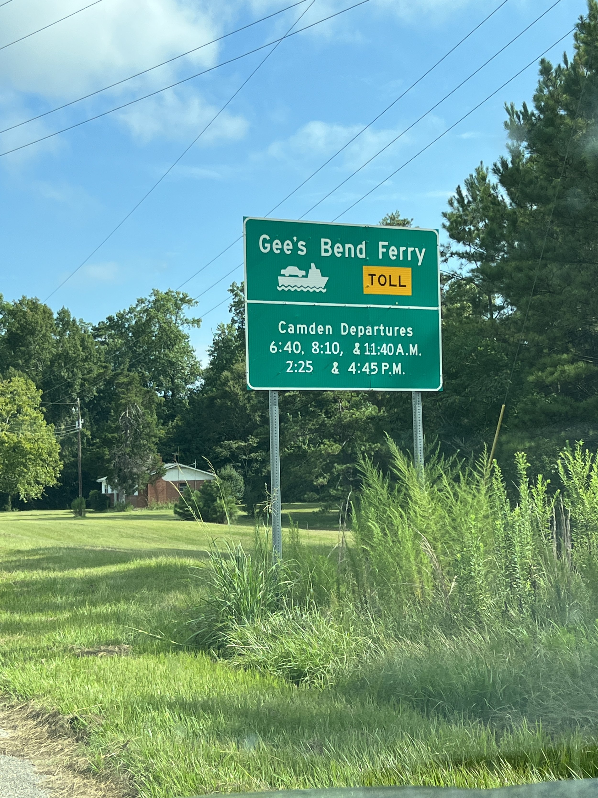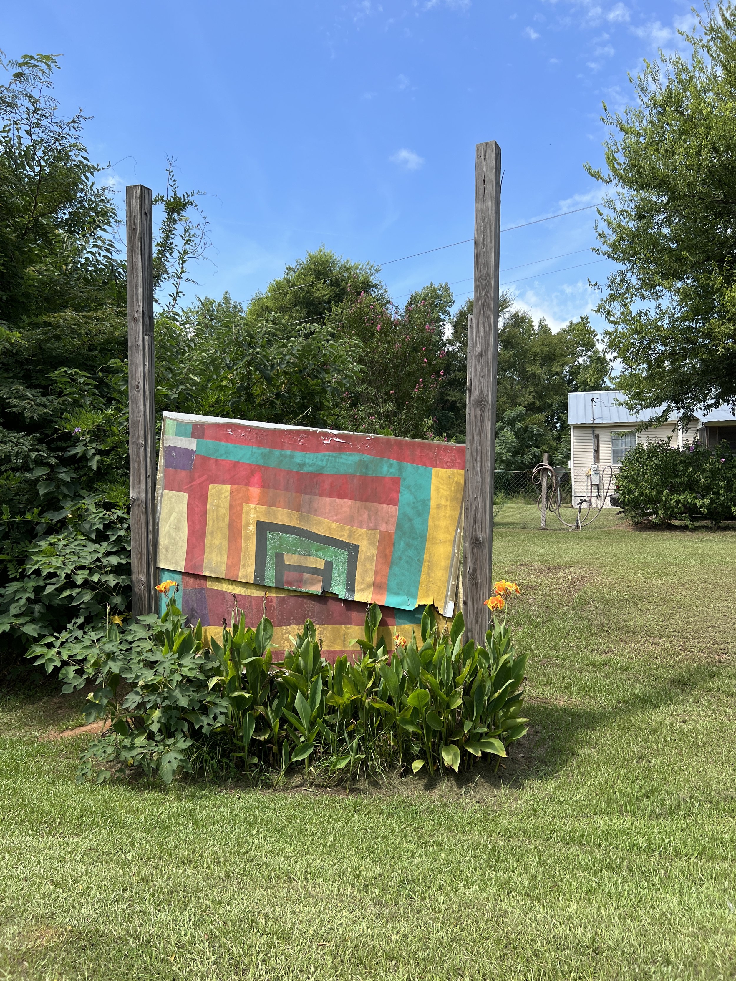 Gee’s Bend is not far from Camden, Alabama but it is far enough out of reach and recessed by its own geography to have become isolated. This separation from society - its utter position in rural America, and the history of enslavement and segregation tied to its geographical location is part of what contributed to the magic of Gee’s Bend quilters. It is accessible by road if you know how (and I was lucky enough to get directions) and by ferry if you don’t (adding to the legend of its isolation). This isolation and lack itself - of resources, of accessibility, of rights, freedom and equality - in combination with the unparalleled skill of the makers and their instinctual resourcefulness is part of the formula of what distinguishes Gee’s Bend quilts from any other. Renown for creating compositions from scraps, these quilts are a masterclass in sustainability; created primarily during the Great Depression and afterward, these quilts exemplify “making do” and yet go so much farther. In their hands, sustainability in the form of quilting became art.